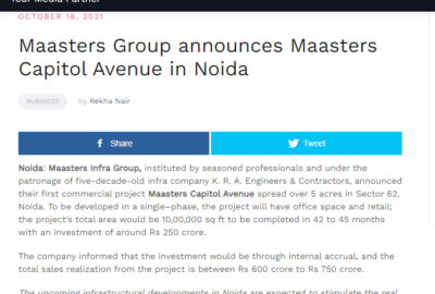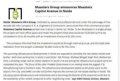Maasters Infra has offered the assured return on booking office spaces in its massive commercial project named Capitol Avenue Noida that is located in sector-62, Noida. This project is the right choice for business freaks to book for shops and office spaces for starting new businesses and corporate offices in the commercial environment. Also, the builder takes pride in offering Assured returns on its projects in Noida that facilitate buyers to get 10 % to 12% assured return on prices post possession. Besides, this project is spread over an area of up to 25 acres of land and its shops and office spaces have made it perfect for starting new businesses and corporate offices too.